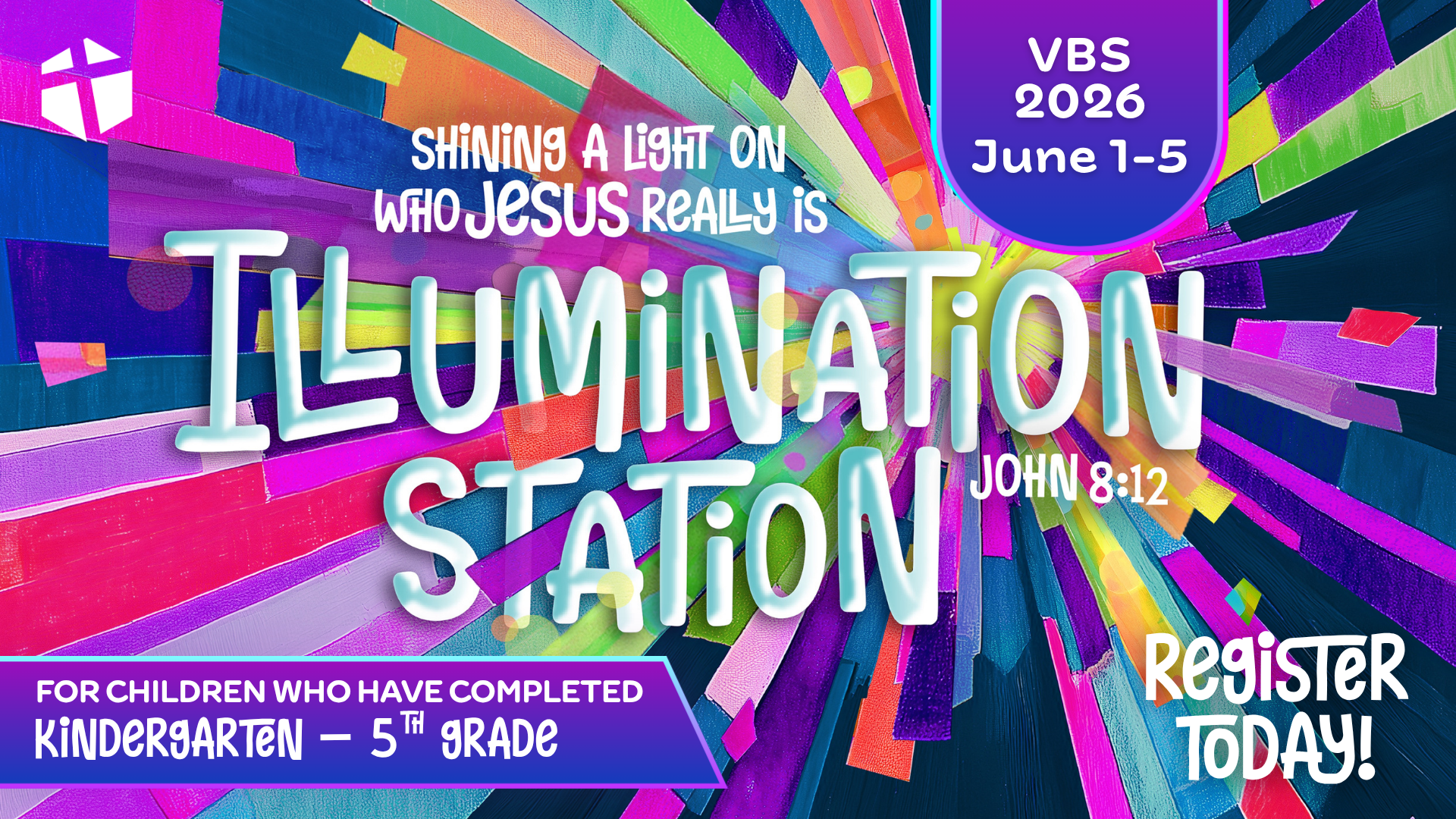 Kids will explore all the ways light brightens, illuminates, reflects, and reveals while discovering that Jesus is the light who brings hope to a dark world! Like the disciples, kids will be challenged to answer Jesus’ question, “Who do you say that I am?” They will discover it’s not a matter of opinion. Jesus is who Scripture says He is—the perfect, proven, and powerful Son of God. Invite your friends and neighbors who have completed Kindergarten – 5th grade to join us, June 1-5, 2026 from 9-12pm each morning.