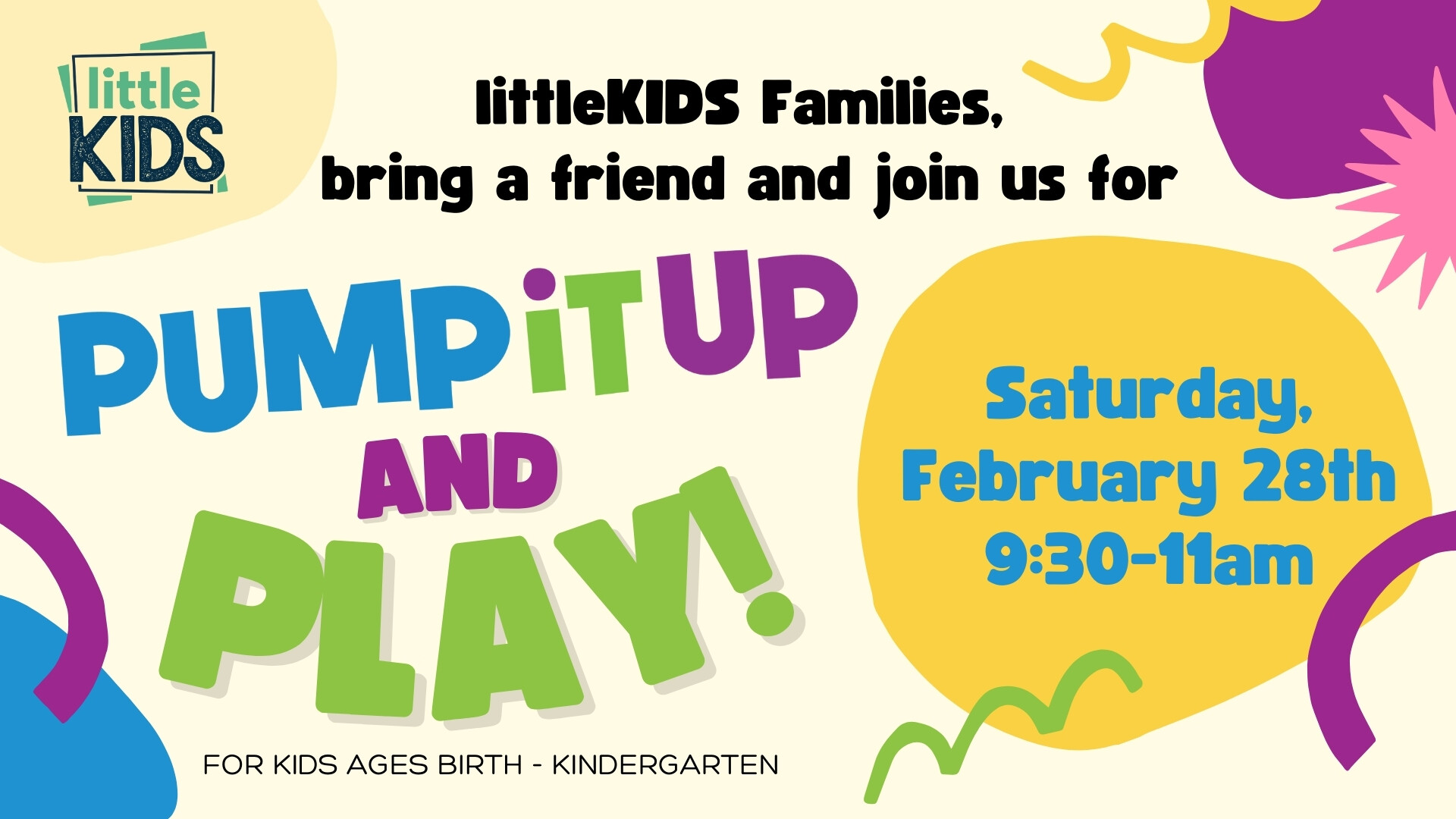 Families with kids ages birth through Kindergarten, join us at Pump It Up-Overland Park! Invite a friend or neighbor and come enjoy some indoor energy burning fun! Please register your attendance below and fill out the online waiver.
