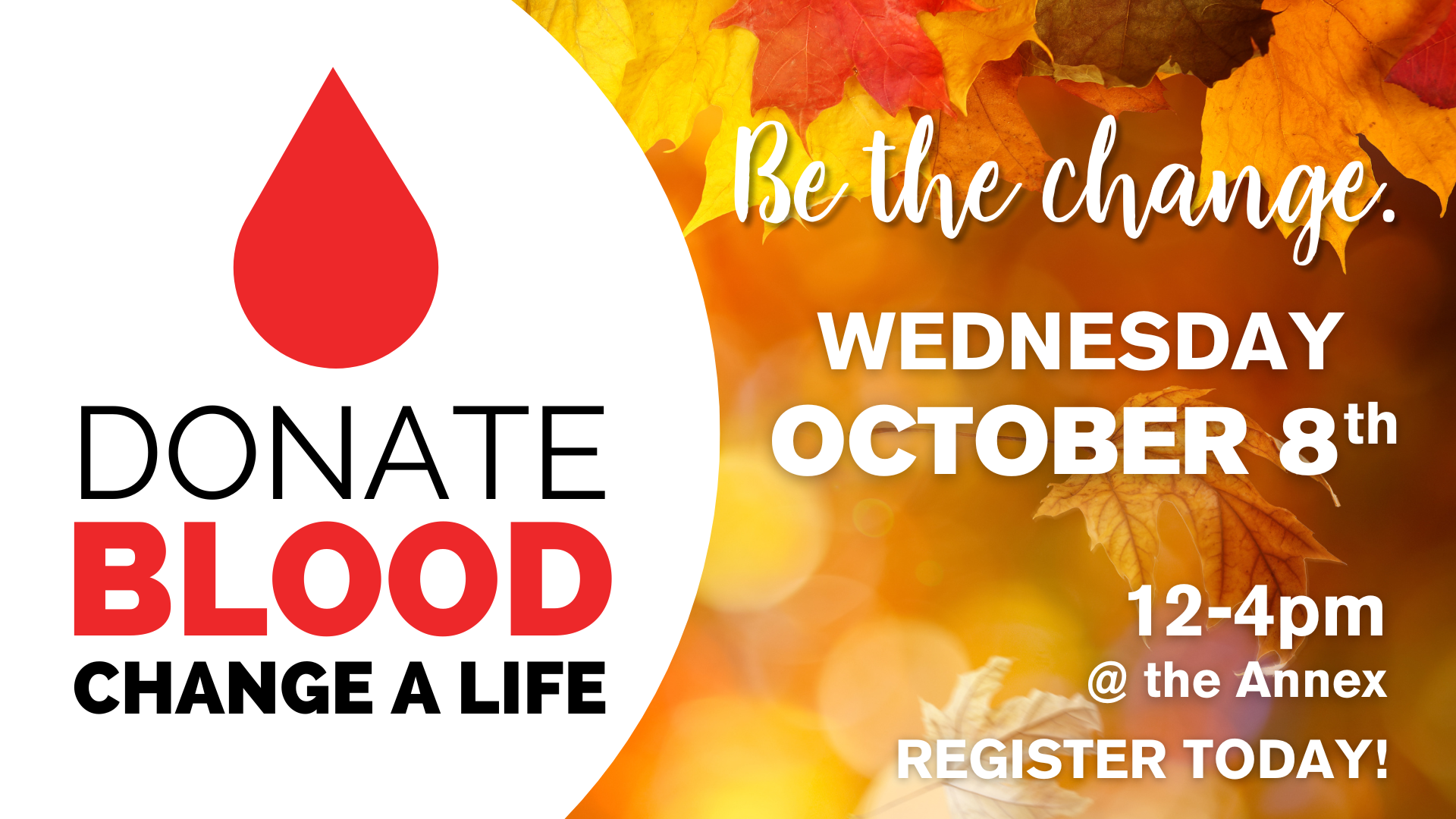 Upcoming Blood Drive dates: Thursday, October 30th @ Ridgeview